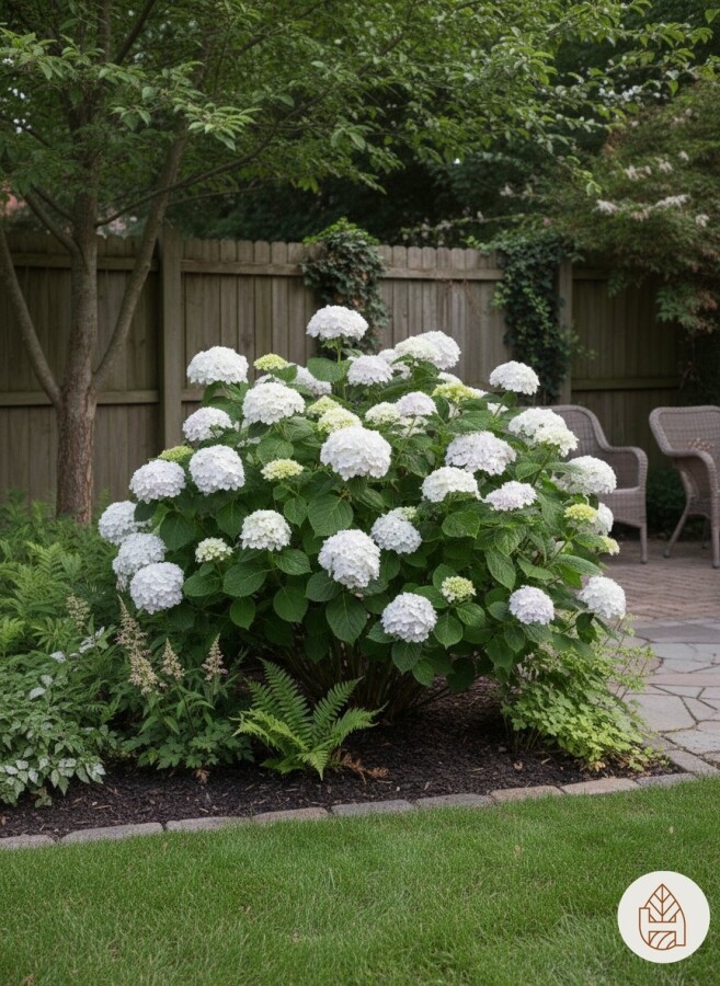 Utilisation de l'Hydrangea macrophylla 'The Bride' dans le jardin