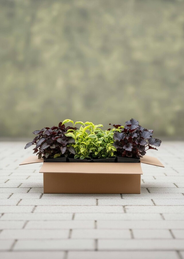 Nous livrons des plantes de petite ou moyenne taille dans des boîtes. La taille de la boîte dépend de la taille de la plante. Nous veillons toujours à ce que la plante dispose de suffisamment d’espace et qu’elle soit bien placée dans la boîte, afin qu’elle ne soit pas endommagée pendant le transport.