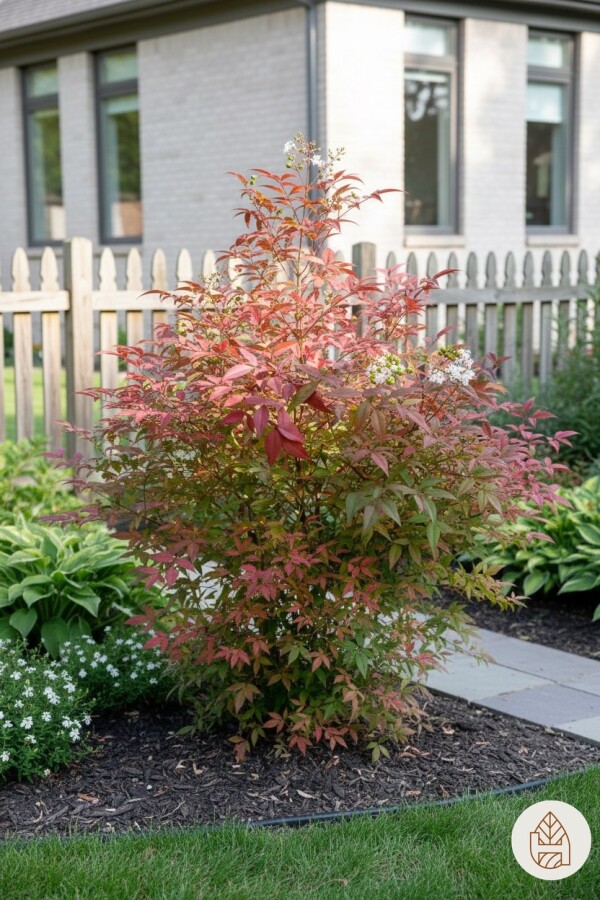 Plantes de jardin comme la Nandina domestica ajoutent une touche décorative grâce à leur feuillage persistant et leurs baies attrayantes.