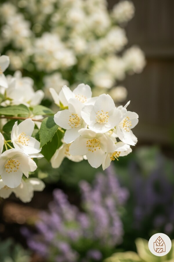 - Philadelphus 'Lemoinei' fleurit en juin et juillet avec des fleurs blanches parfumées.